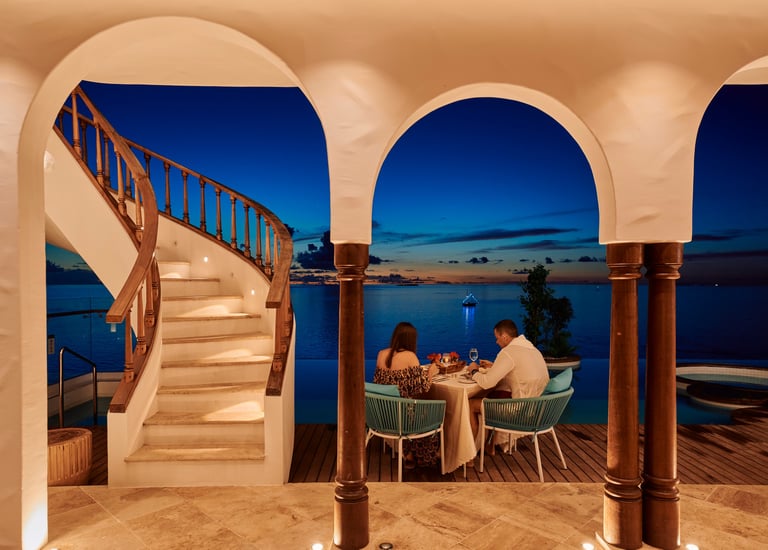 Breakfast. Snorkeling, diving, or water sports. Afternoon relaxation. Sunset cocktails or private dining.